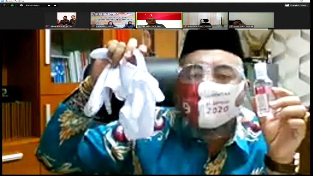 Turut hadir dalam acara rakor daring Ketua dan Anggota Bawaslu Provinsi NTB sekaligus menjadi Narasumber, M.Khuwailid, S.Ag., MH, Umar Achmad Seth, SH., MH, Itratip S.T., MT, Suhardi S.IP., MH, Dr.Hj.Yuyun Nurul Azmi S.Pt., MP, Ida Ayu Wayan Manik Kurniawati, S.STP., MH Kepala Bagian Pengawasan dan Humas selaku Moderator, beserta staf Pengawasan Bawaslu NTB yang diikuti oleh jajaran pengawas Bawaslu Kabupaten/Kota Se-NTB dalam rangka upaya mengoptimalkan pengawasan dan melakukan pencegahan secara maksimal. Serta, meningkatkan kualitas hasil pengawasan ditengah pandemi Covid 19.Â