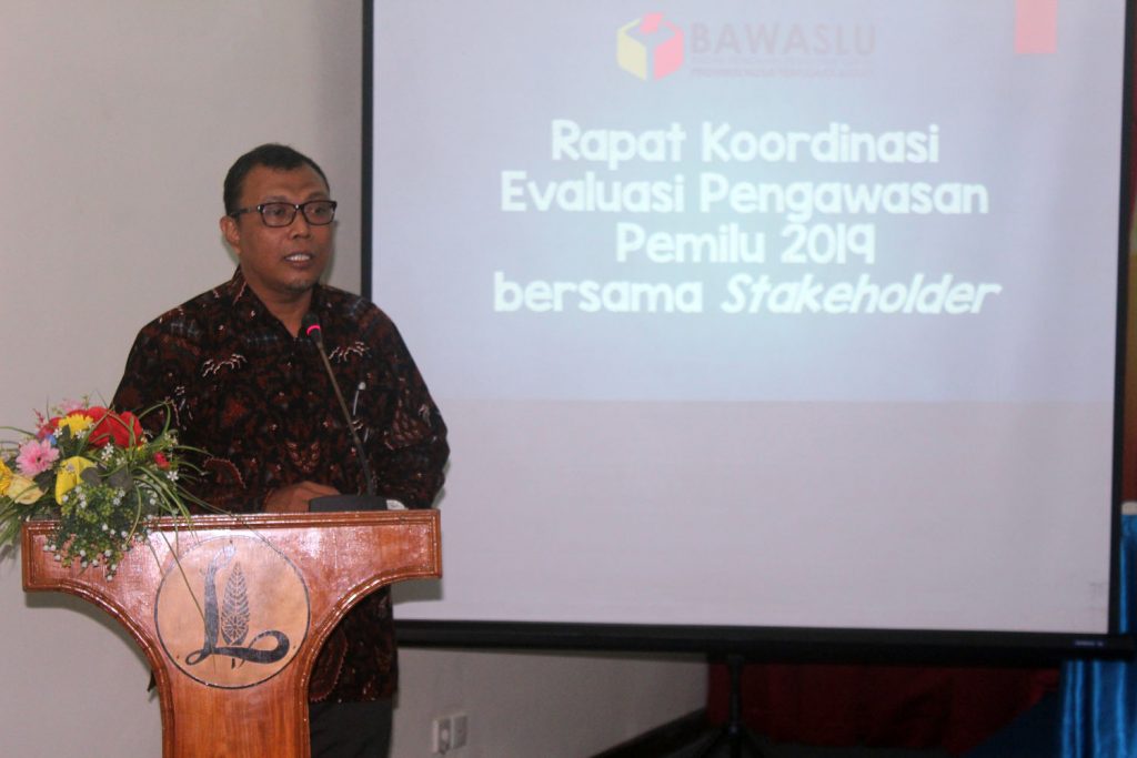 Beri Sambutan Ketua Bawaslu NTB M.Kwuwailid Saat acara Rapat koordinasi Evaluasi Pengawasn Pemilu 2019 bersama Stakeholder Sabtu, (30/11/19)