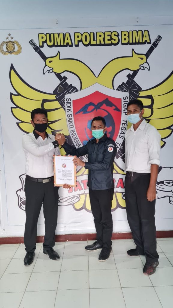 Kordiv Penindakan Bawaslu Kabupaten Bima (tengah) saat meneruskan/melimpahkan berkas perkara ke penyidik Polres Kabupaten Bima, Senin (26/10) /Photo: Humas Bawaslu Kabupaten Bima