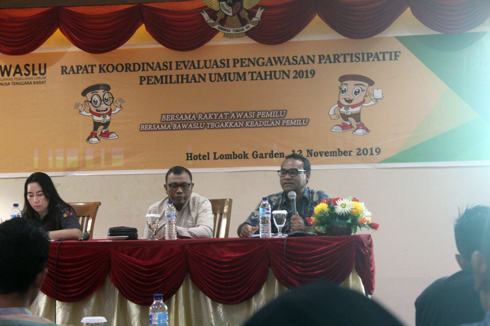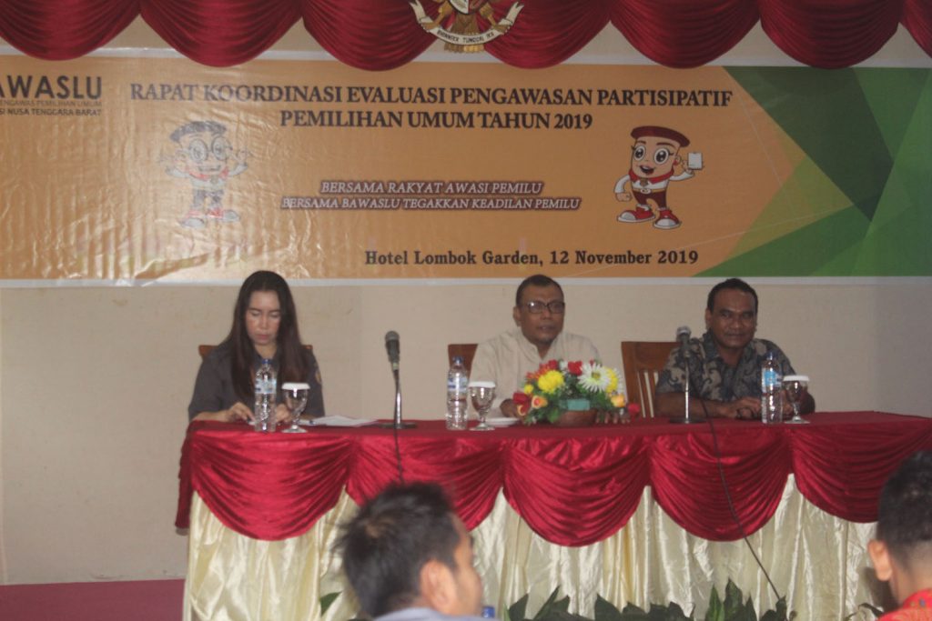 Untuk itu, Badan Pengawas Pemilu (Bawaslu) Provinsi NTB menggelar Rapat Koordinasi (Rakor) Evaluasi Pengawasan Partisipatif pemilihan umum tahun 2019 di Hotel Lombok Garden Selasa ( 12/11/19).