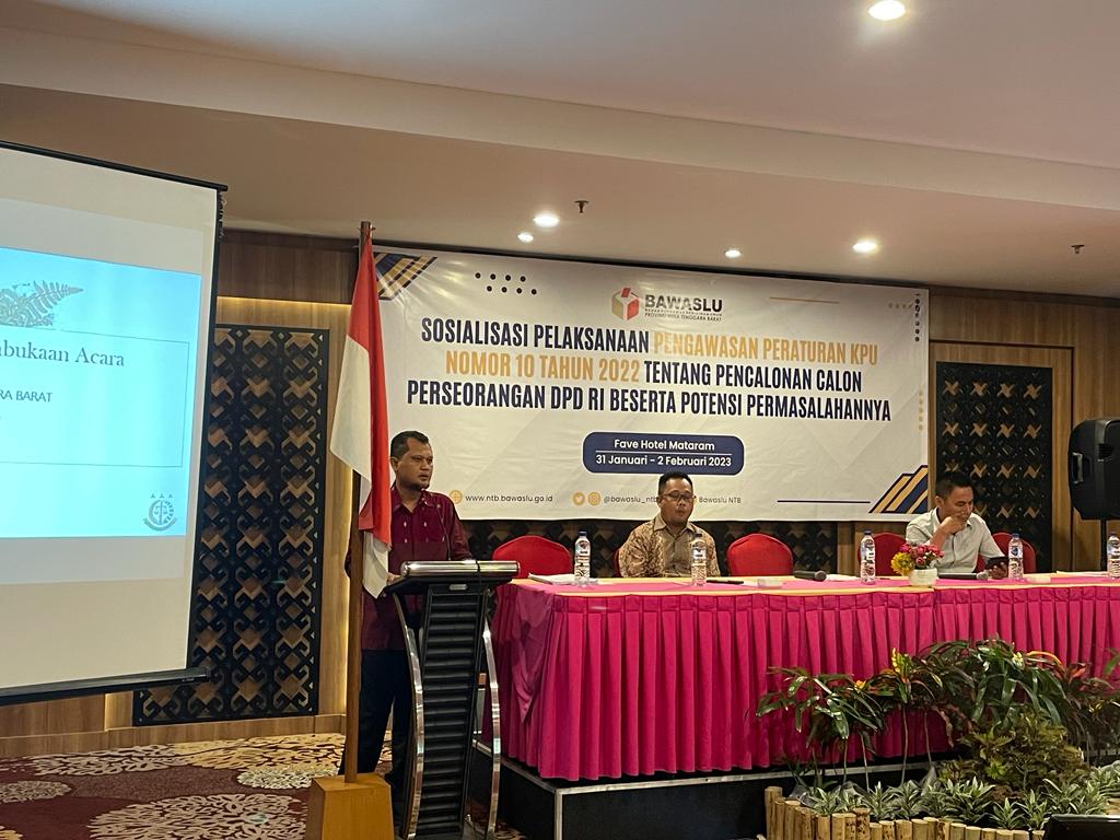 Mataram - Badan Pengawas Pemilihan Umum (Bawaslu) Provinsi NTB menggelar Sosialisasi Pelaksanaan Pengawasan Peraturan KPU No 10 Tahun 2022 tentang Pencalonan Anggota DPD RI pada Selasa-Kamis (31/1 - 2/2).