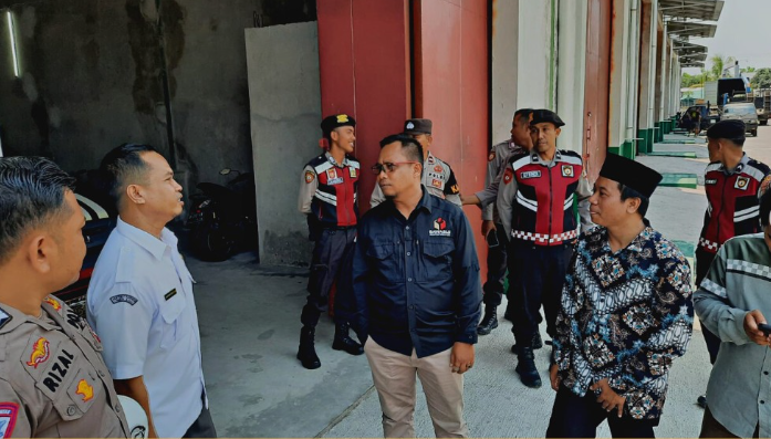 Syaifuddin (tengah), melakukan pengawasan dan monitoring langsung gudang distribusi logistik pemilu 2024 KPU Kota Mataram dan KPU Lombok Barat, pada Kamis (26/10).