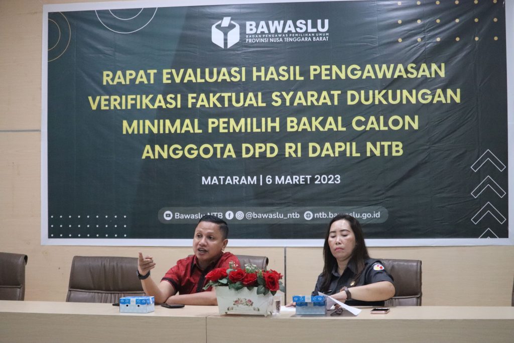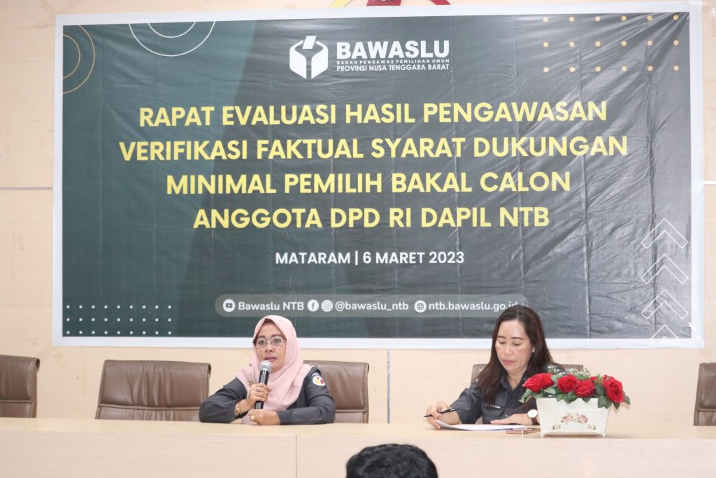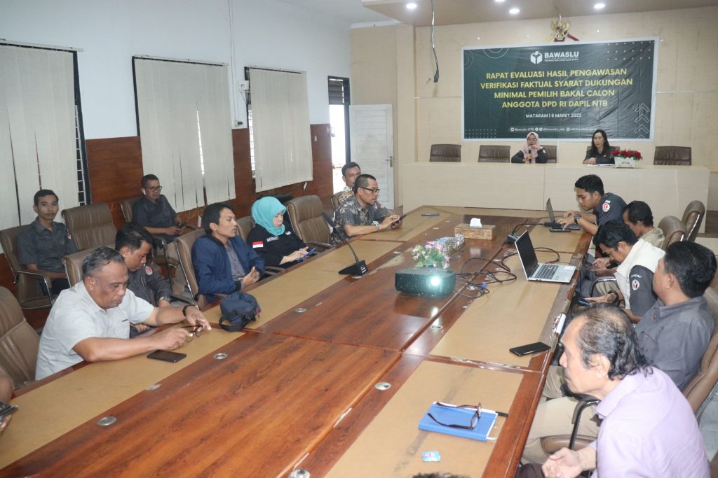 Mataram, Bawaslu NTB- Anggota Bawaslu NTB, Yuyun Nurul Azmy menyampaikan bahwa dalam pelaksanaan pengawasan baik dalam tahapan yang berjalan saat ini dan kedepannya, jajaran pengawas harus jeli terhadap potensi pelanggaran maupun sengketa agar dapat dicegah sedini mungkin. Hal tersebut disampaikan Yuyun saat menggelar Rapat Evaluasi Hasil Pengawasan Verifikasi Faktual Dukungan Minimal Pemilih Bakal Calon Anggota DPD RI Dapil NTB pada Senin (6/3) yang diikuti oleh Anggota Bawaslu Kabupaten/Kota se-NTB.