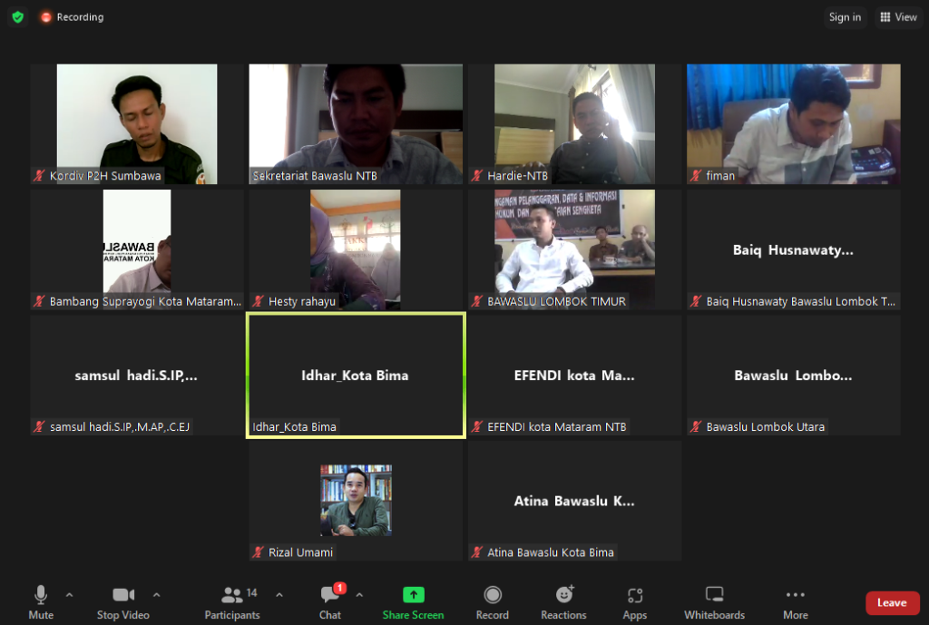 Tangkapan layar rapat koordinasi Bawaslu NTB yang digelar via daring dan diikuti oleh jajaran Bawaslu Kabupaten/Kota