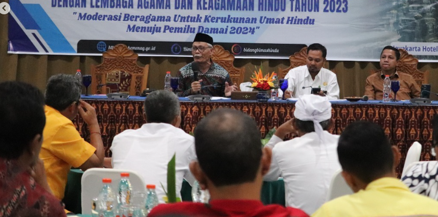Kegiatan tersebut mengangkat tajuk “Moderasi Beragama untuk Kerukunan Umat Hindu Menuju Pemilu Damai 2024†dan digelar untuk meningkatkan kerukunan umat beragama dan menciptakan suasana kondusif pada saat pelaksanaan Pemilu 2024.