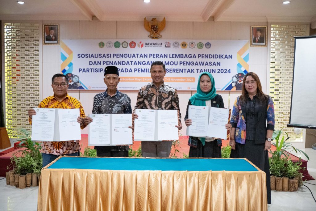Bawaslu NTB menandatangani Nota Kesepahaman Bersama dan Nota Kesepakatan Aksi dengan 3 Universitas di Provinsi NTB.Penandatanganan naskah kerjasama tersebut dilaksanakan pada Kamis (7/11) di Hotel Lombok Raya. Ketiga universitas tersebut adalah Universitas Islam Al-Azhar, Universitas 45 Mataram, dan Universitas Bumigora.