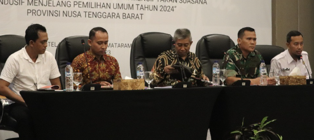 Rapat tersebut digelar untuk meningkatkan sinergitas seluruh stakeholder yang ada di Provinsi NTB untuk mendukung pelaksanaan Pemilu 2024 yang kondusif.
