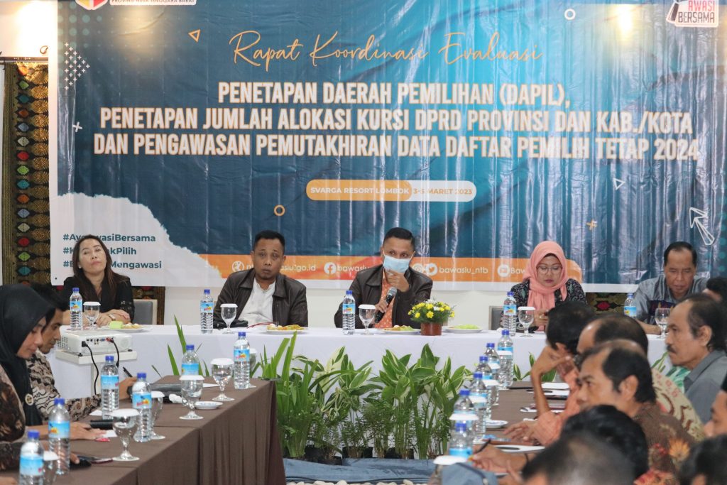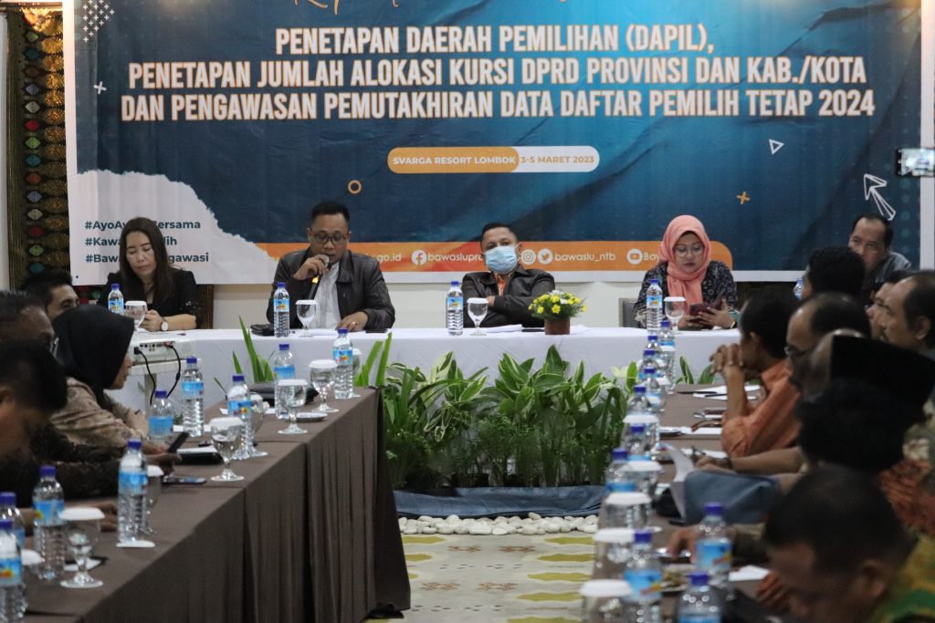 Anggota Bawaslu NTB, Syaifuddin (dua dari kiri) saat sampaikan Evaluasi Penataan Dapil (3/3)