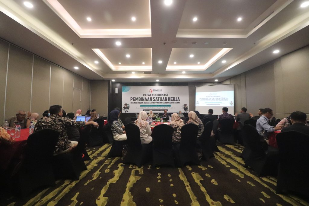 Bawaslu NTB menggelar kegiatan Rapat Koordinasi Pembinaan Satuan Kerja di Lingkungan Badan Pengawas Pemilihan Umum Provinsi Nusa Tenggara Barat yang diikuti oleh jajaran Bawaslu Kabupaten/Kota se-NTB. Kegiatan tersebut digelar pada Jumat-Sabtu (8/11-9/11) di Hotel Astoria, Kota Mataram.