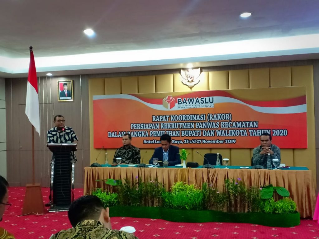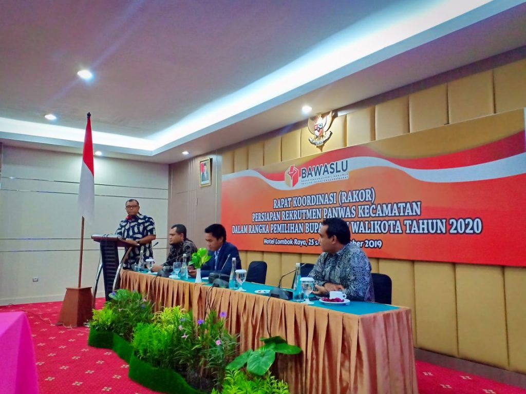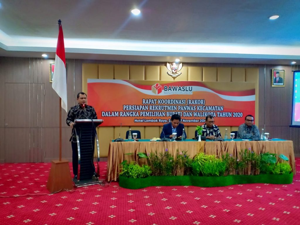 BAWASLU NTB, MATARAM- Bawaslu Provinsi NTB mengundang Ketua, Kordiv Organisasi dan SDM, Koordinator Sekertariatan dan 1 orang Staff operator pokja Bawaslu Kabupaten/Kota se-NTB untuk rapat bersama dalam rangka Persiapan Rekrutmen Panwas Kecamatan dalam rangka Pemilihan Bupati dan walikota Tahun 2020, di Hotel Lombok Raya, 25-27 November 2019