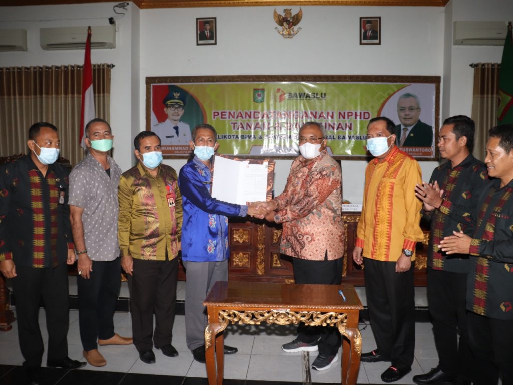Penerimaan hibah tersebut diawali dengan penandatanganan Naskah Perjanjian Hibah Daerah (NPHD) dan Berita Acara Serah Terima (BAST) berupa tanah seluas 1300 meter persegi dan bangunan seluas 700 meter persegi bersama Bawaslu RI dan Pemerintah Kota Bima, Kamis (24/3/2022) di aula Kantor Walikota Bima.