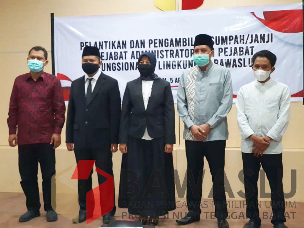Mataram-Bawaslu NTB, Pelantikan dan Pengambilan Sumpah atau Janji Pejabat Administrator dan Pejabat Fungsional di Lingkungan Badan Pengawas Pemilihan Umum RI Sebanyak 76 orang. Pejabat Administrator dan Fungsional terdiri 30 jabatan administrator dan 46 jabatan fungsional untuk mengisi kekosongan jabatan di seluruh Indonesia secara resmi dilantik oleh Sekretaris Jenderal Bawaslu RI Dr. Gunawan Suswantoro yang dilakukan secara virtual dari Kantor Bawaslu RI, Jakarta Pusat pada Senin( 5/05/202).