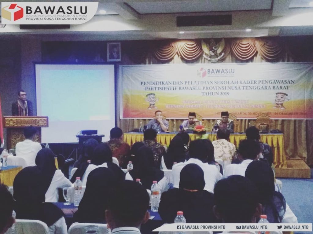 BAWASLU NTB, SENGGIGI-Untuk mencetak kader- kader pengawasan partisipatif dalam membantu fungsi sosialisasi di organisasi - organisasi semua masyarakat. Badan Pengawas Pemilihan Umum (Bawaslu) Nusa Tenggara Barat, menggelar pelatihan Sekolah Kader Pengawasan Partisipatif (SKPP) di Hotel Jayakarta Senggigi Lombok Barat (Sabtu, 30/11/2019).