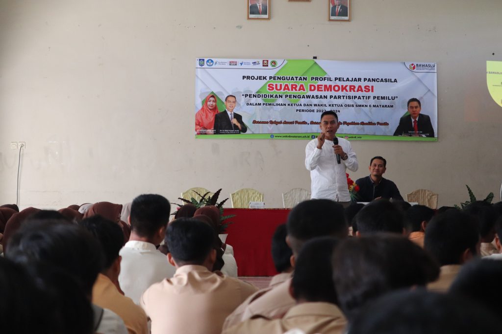 Dalam rangka pemilihan Ketua dan Wakil Ketua Osis SMK Negeri 6 Mataram Periode 2024-2024 pihak sekolah mengadakan sosialisasi pengawasan partisipatif. Gelaran ini bertujuan untuk mengedukasi kepada siswa-siswi di sekolah mengenai dasar-dasar kepemiluan dan bagaimana langkah-langkah yang harus diambil oleh pemilih.
