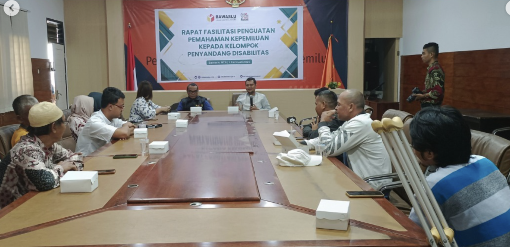 Mataram, Bawaslu NTB- Badan Pengawas Pemilihan Umum (Bawaslu) Provinsi NTBÂ menggelar Fasilitasi Penguatan Pemahaman Kepemiluan kepada Kelompok Penyandang Disabilitas dalam Pemilu Tahun 2024 di ruang rapat Bawaslu NTB, pada Jumat (2/2).