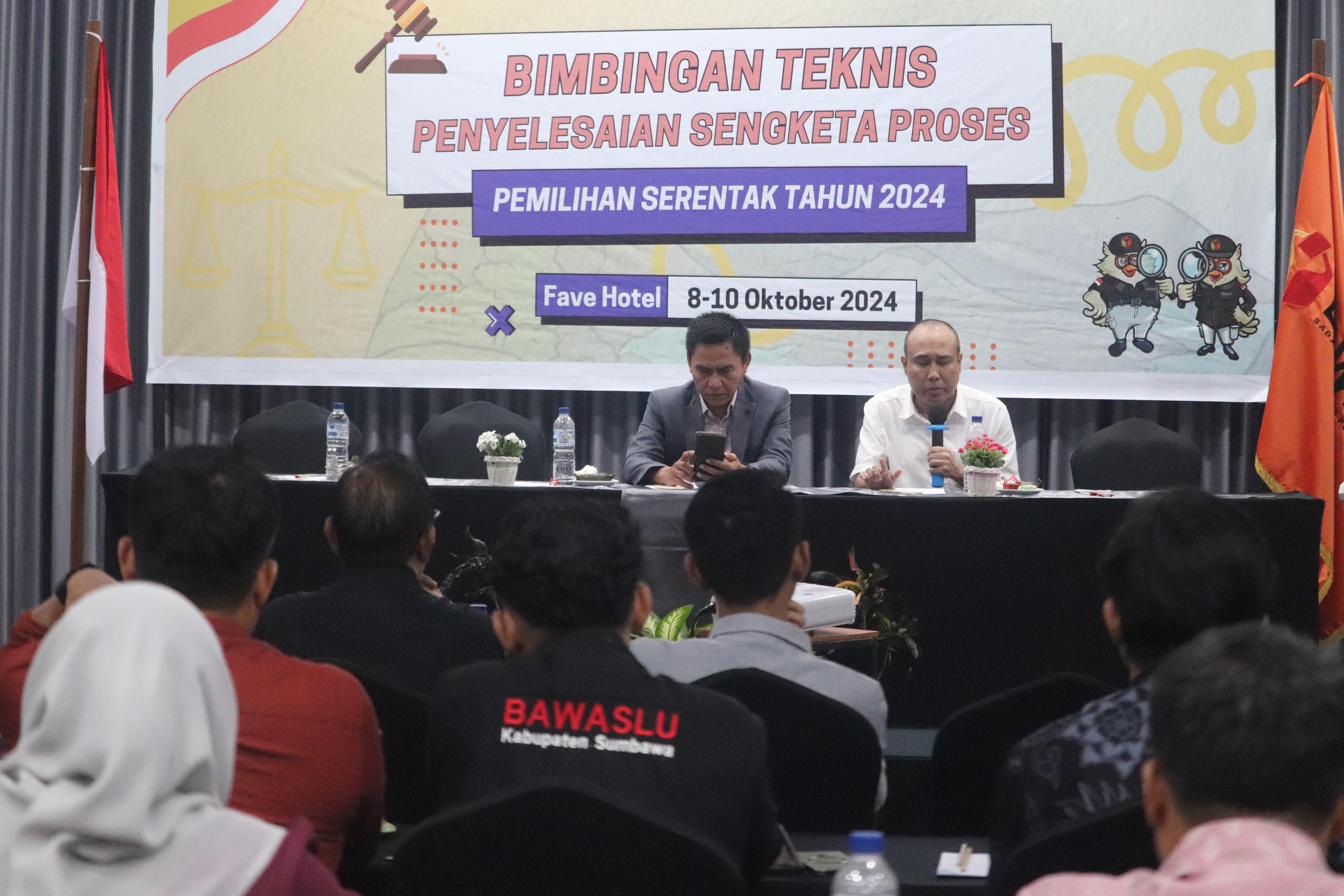 MATARAM, Sahab Bawaslu-Bawaslu NTB menggelar Bimbingan Teknis (Bimtek) Penyelesaian Sengketa Proses pada Pemilihan Kepala Daerah (Pilkada) Serentak Tahun 2024 yang diikuti oleh jajaran Bawaslu Kabupaten/Kota se-NTB pada Selasa-Kamis (8/10-10/10) di Kota Mataram.