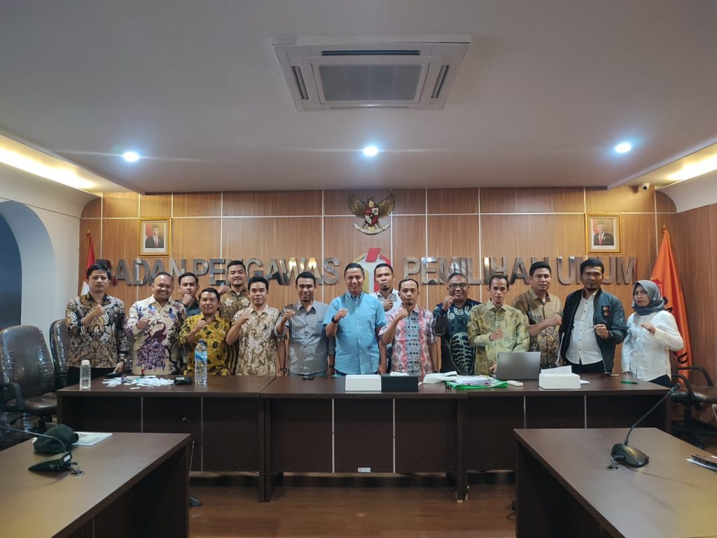 Koordinator Divisi Pencegahan Partisipasi Masyarakat dan Hubungan Masyarakat Bawaslu Provinsi NTB, Hasan Basri bersama pimpinan 10 Bawaslu Kabupaten/Kota se-NTB menyampaikan Laporan Akhir Pengawasan Penyusunan Daftar Pemilih Tetap (DPT) Pemilu 2024 kepada Bawaslu Republik Indonesia. Laporan diterima oleh pejabat struktural Divisi P2H Bawaslu di kantor Sekretariat Jenderal Bawaslu, Jum'at (11/8).