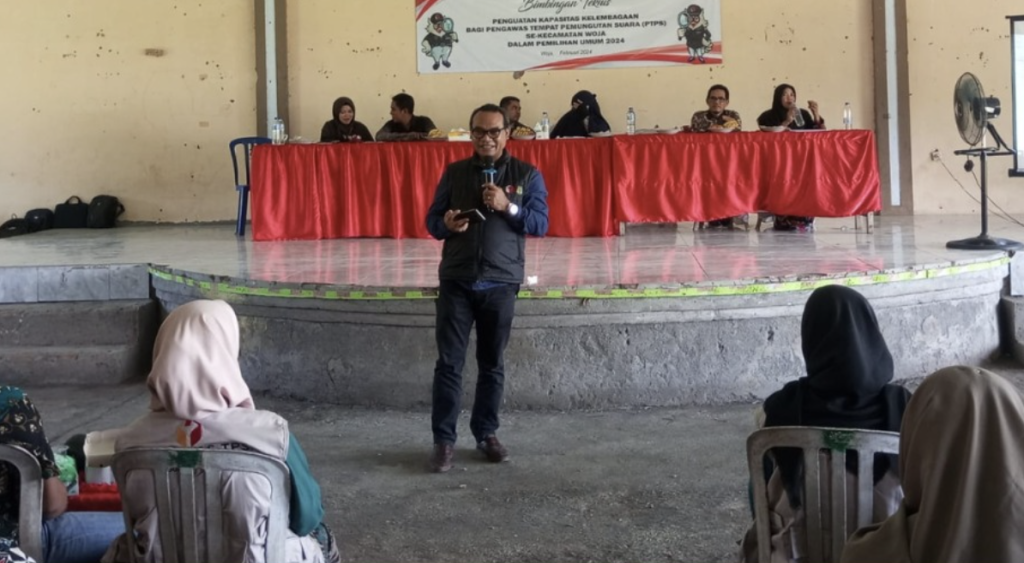 Dompu, Bawaslu NTB- Anggota Bawaslu NTB, Umar Achmad Seth, memberikan Bimbingan Teknis Penguatan Kapasitas Kelembagaan Pengawas TPS sekaligus melakukan Monitoring menjelang H-6 Pemungutan dan Penghitungan Suara Pemilu 2024 di Kabupaten Dompu pada Kamis (8/2).