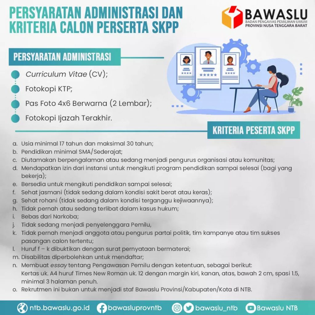 Yuuk Daftar Sekolah Kader Pengawas Pemilu Partisipatif (SKPP) Bawaslu Provinsi NTB