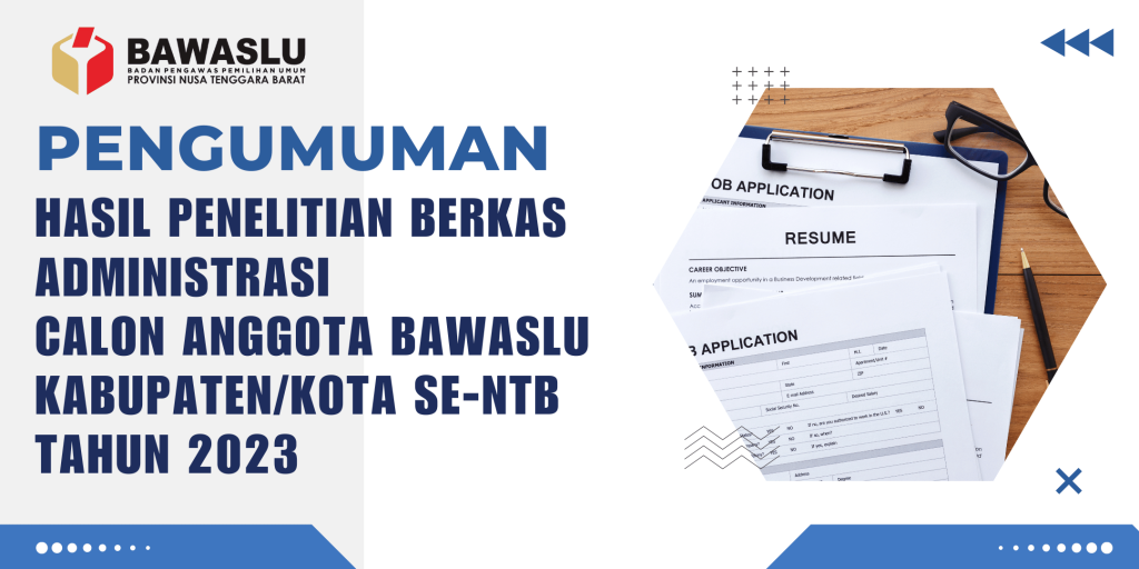 Dalam rangka melaksanakan amanat Undang – Undang Nomor 7 Tahun 2017 tentang Pemilihan Umum, setelah melakukan penelitian berkas administrasi bakal calon anggota Bawaslu Kabupaten/Kota se-Provinsi NTB, maka dengan ini kami mengumumkan nama-nama yang lolos seleksi administrasi.