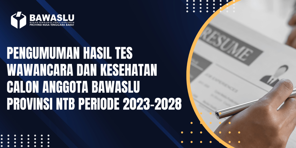 Setelah melakukan penilaian atas tes wawancara dan tes kesehatan terhadap Calon Anggota Bawaslu Provinsi Nusa Tenggara Barat untuk Periode 2023-2028, bersama ini diumumkan nama-nama yang lulus tes tersebut di atas.
